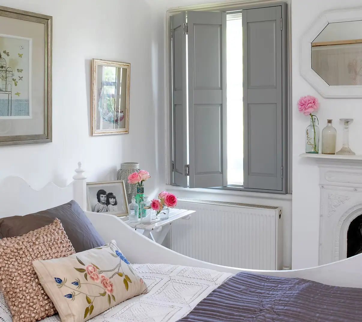 Traditional elegance with maximum privacy. Victorian-style shutters for period charm and superior room darkening.